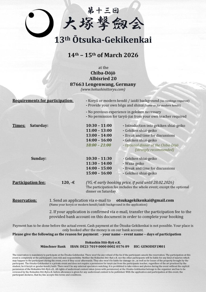 Payment has to be done before the actual event. Cash payment at the Ōtsuka-Gekikenkai is not possible. Your place is only booked after the money is on our bank account.
